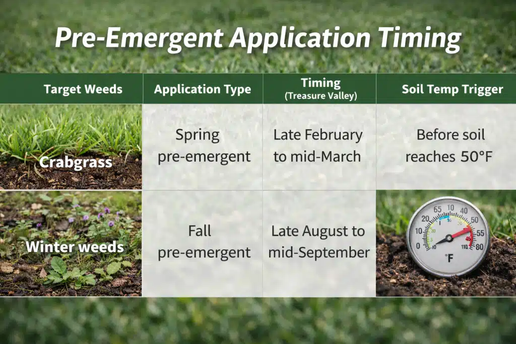 Fall treatment is one of the most underused and most effective windows in Idaho lawn care. Dandelions and other perennial broadleaf weeds are actively moving nutrients down into their root systems in fall, which means broadleaf herbicides applied in September and October are translocated more efficiently and kill the root rather than just the top growth. For winter annual weeds like henbit and Poa annua, a fall pre-emergent application prevents germination entirely. Many homeowners who skip fall treatment end up fighting a heavier weed load the following spring because they missed the window when their treatments would have been most effective and most efficient.